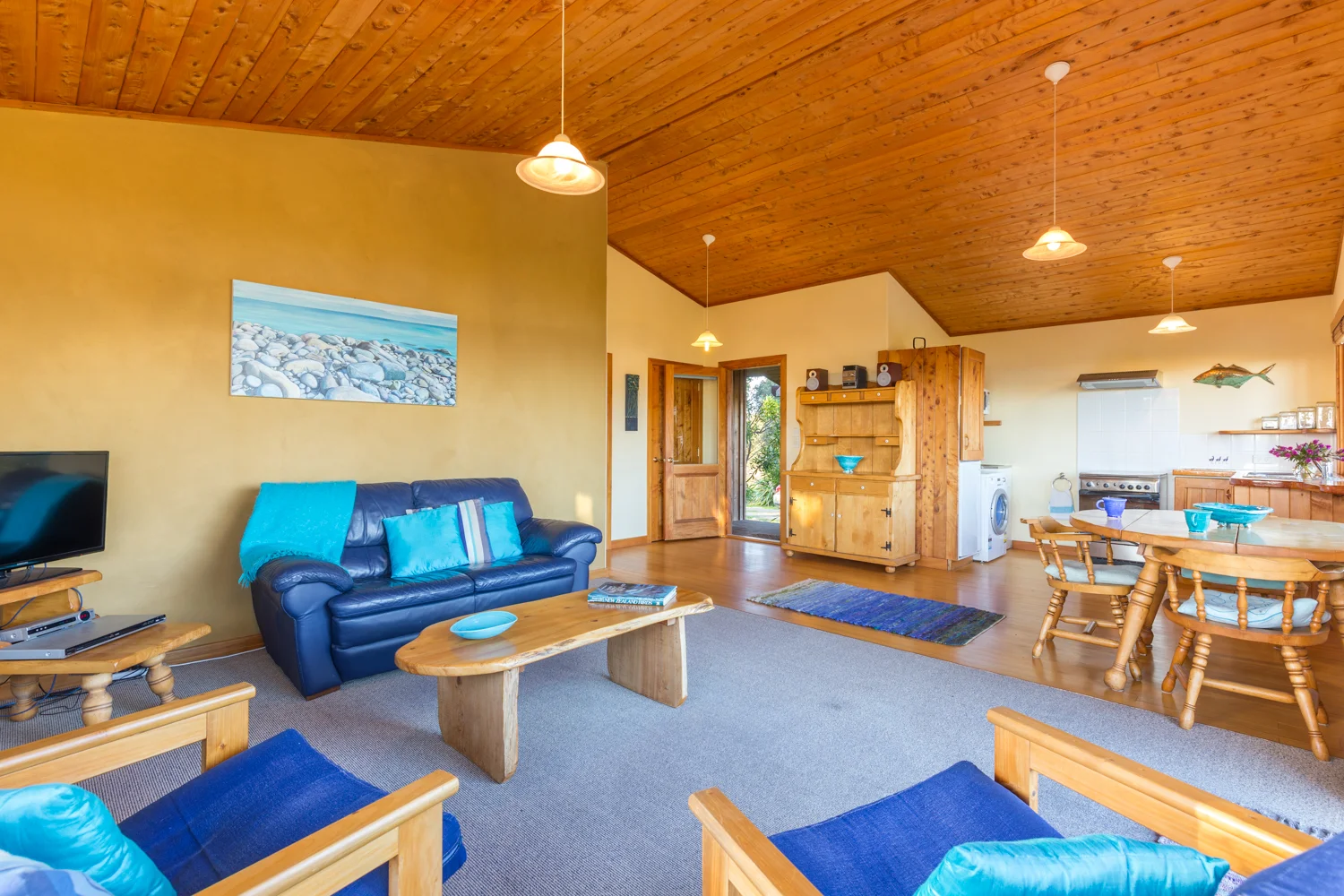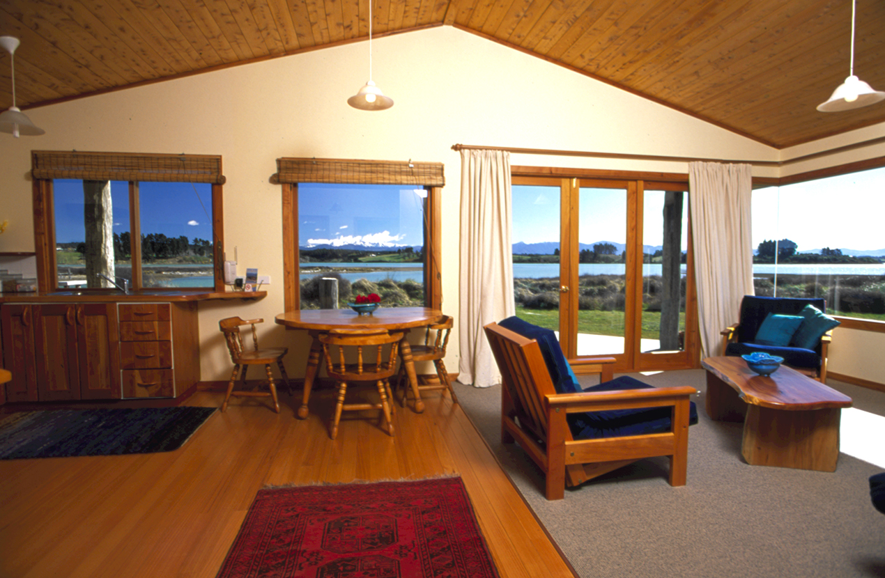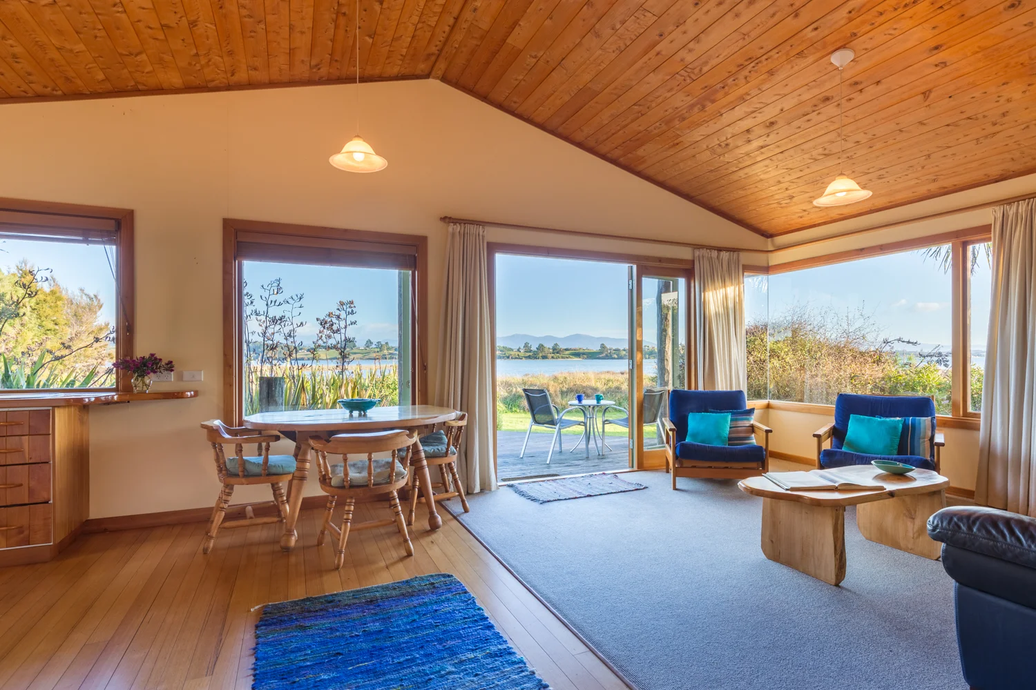 Spacious sunny open plan lounge -dining room, twenty metres from the waters edge.